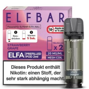 Jeder ELFA Pod Strawberry Grape enthält 2 ml Liquid mit 20 mg/ml Nikotinsalz und sorgt für ein sanftes, intensives Dampferlebnis. Die integrierte Mesh Coil garantiert eine gleichmäßige Verdampfung, vollen Geschmack und konstante Dampfentwicklung. Die Kombination aus Erdbeere und Traube liefert ein angenehm süßes, rundes Aroma – perfekt für den ganzen Tag.
